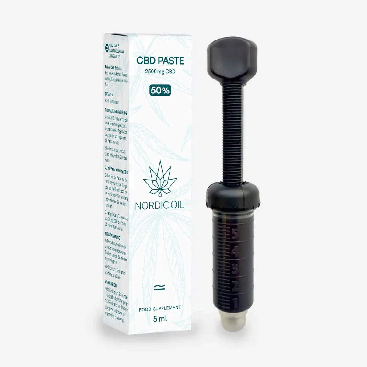 - 5ml pasta w poręcznym dozowniku z 50% zawartością CBD (2500mg)