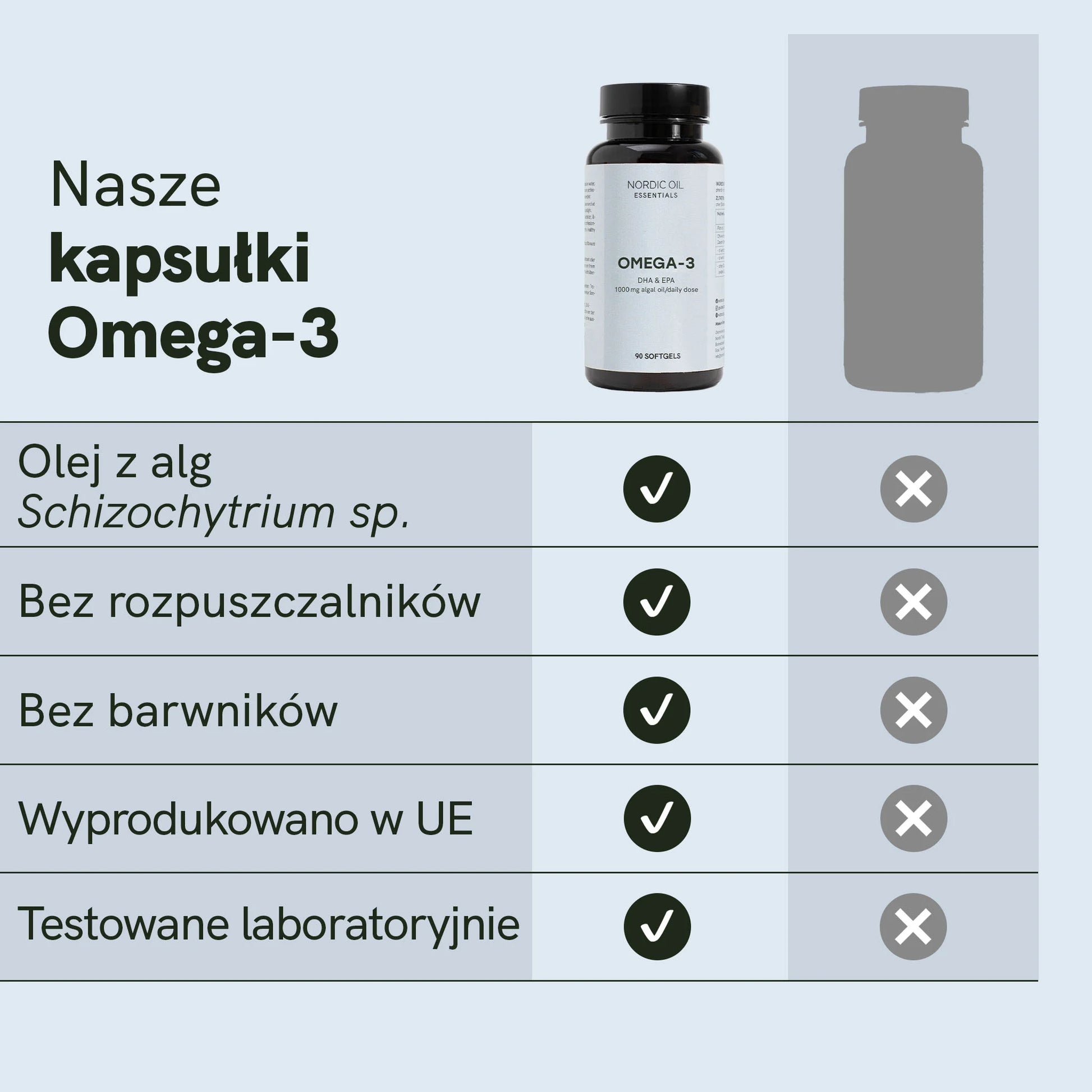 - Dzienna dawka 1000 mg wysokiej jakości oleju z alg
