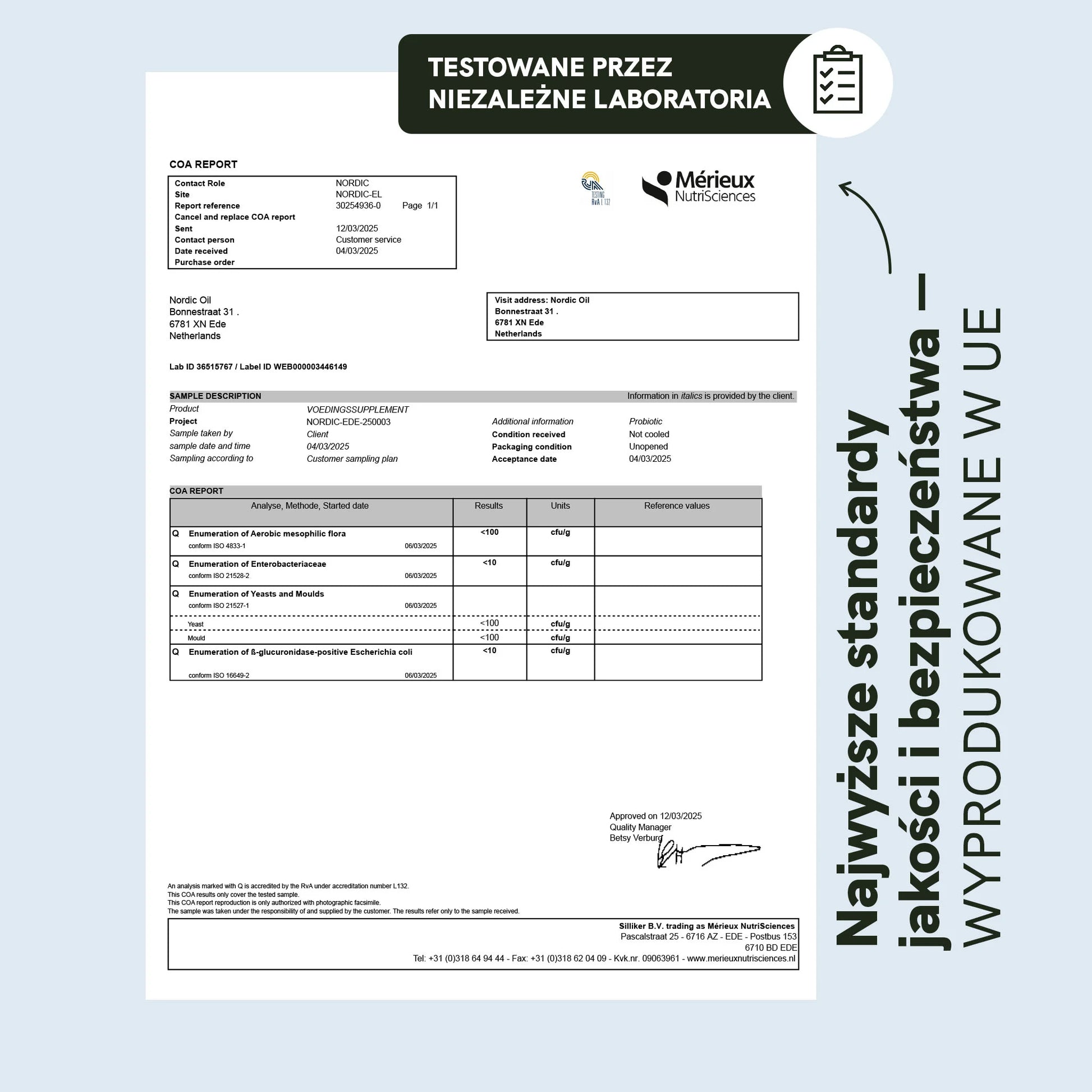 - 180 kapsułek probiotycznych z 25 miliardami CFU na kapsułkę