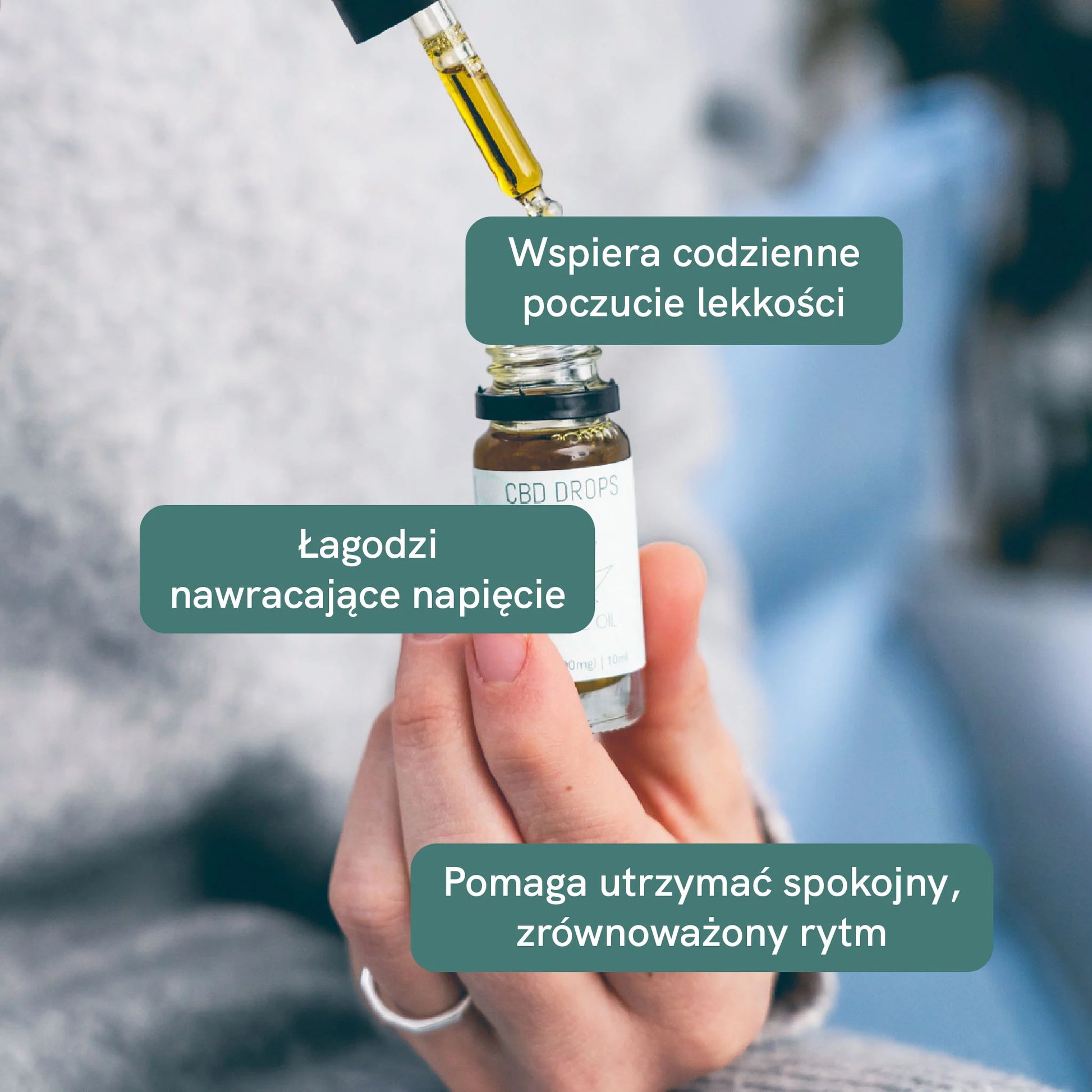 - Umieść 1-3 krople bezpośrednio pod językiem. Aby zachować jakość swojego oleju CBD, unikaj dotykania pipety ustami.