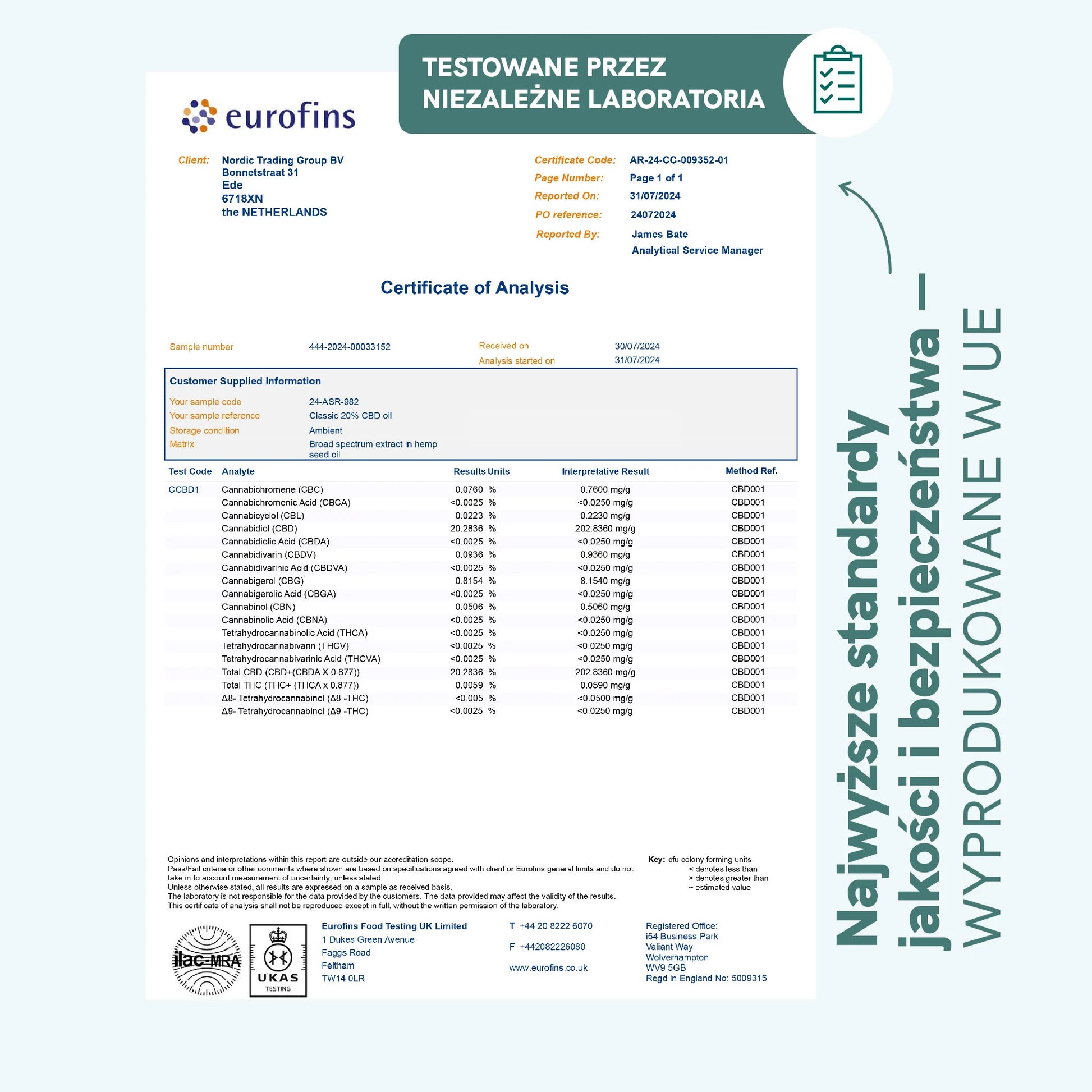 | Kannabinoidy | 2000mg CBD, <0,02% THC (niewykrywalne) |