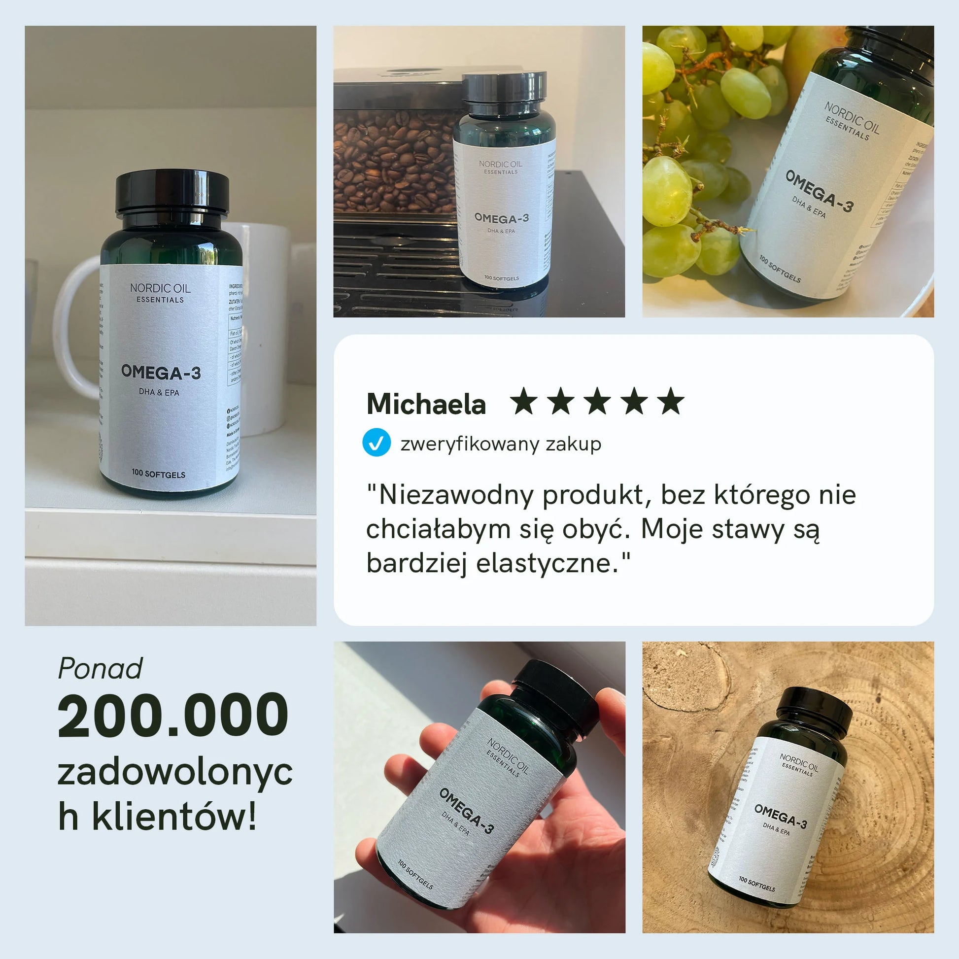- Dzienna dawka 1000 mg wysokiej jakości oleju z alg