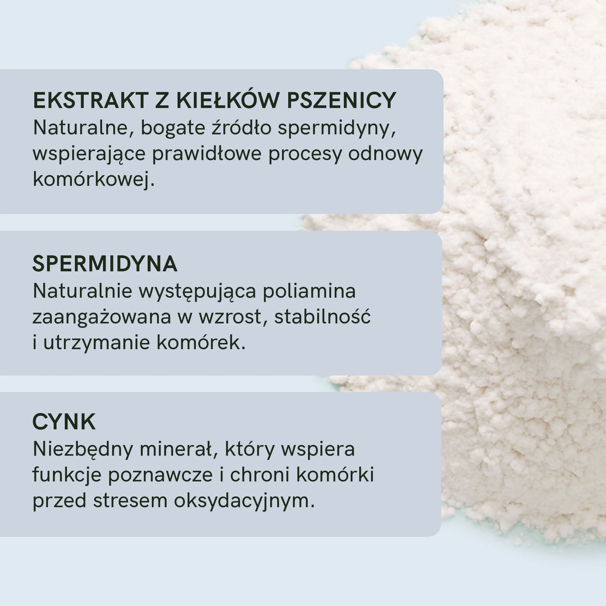 - Dostarczają do 6 mg spermidyny i do 4,5 mg cynku w dziennej porcji