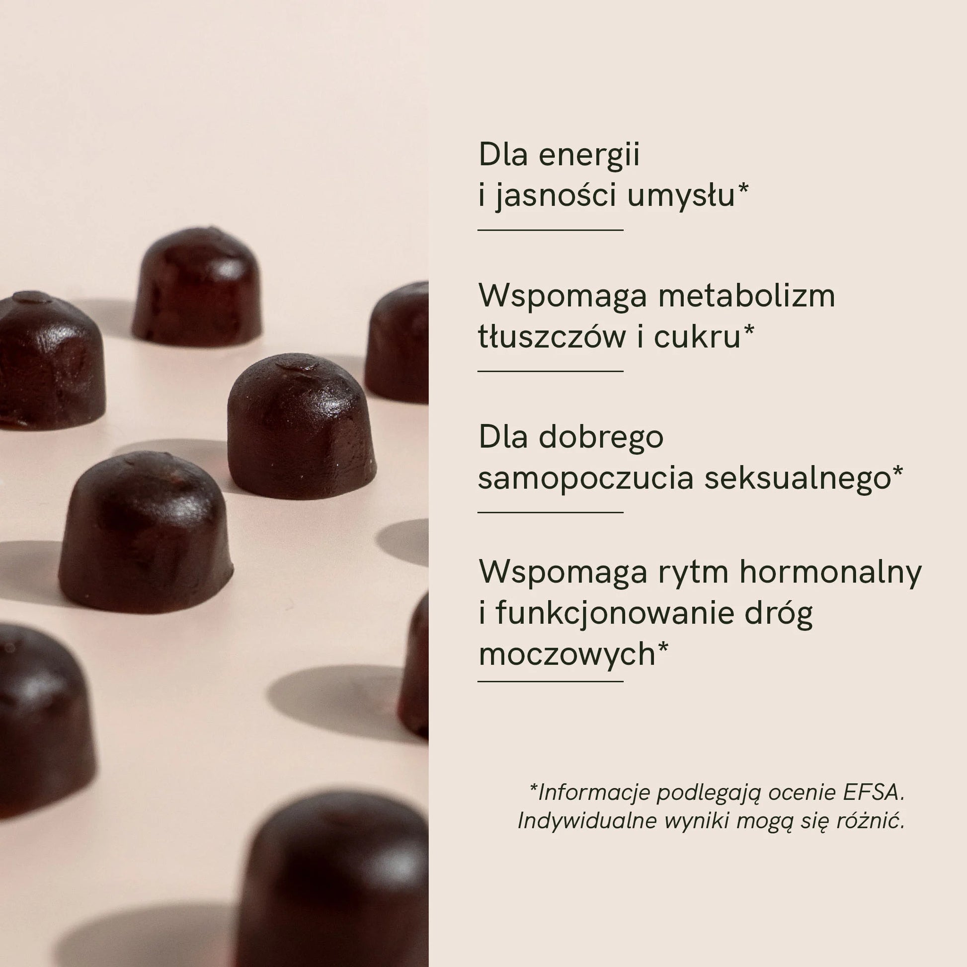 - 60 żelków w opakowaniu — wyprodukowane w UE i przebadane laboratoryjnie
